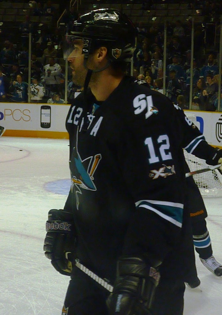 The Sharks have three ex-Leafs, including Ian White (above) and Jamal Mayers (below). They were part of the Phaneuf trade but both escaped Calgary and ended up here (White also spent a short time in Carolina). White seemed confused to be playing hockey in late April for some reason.